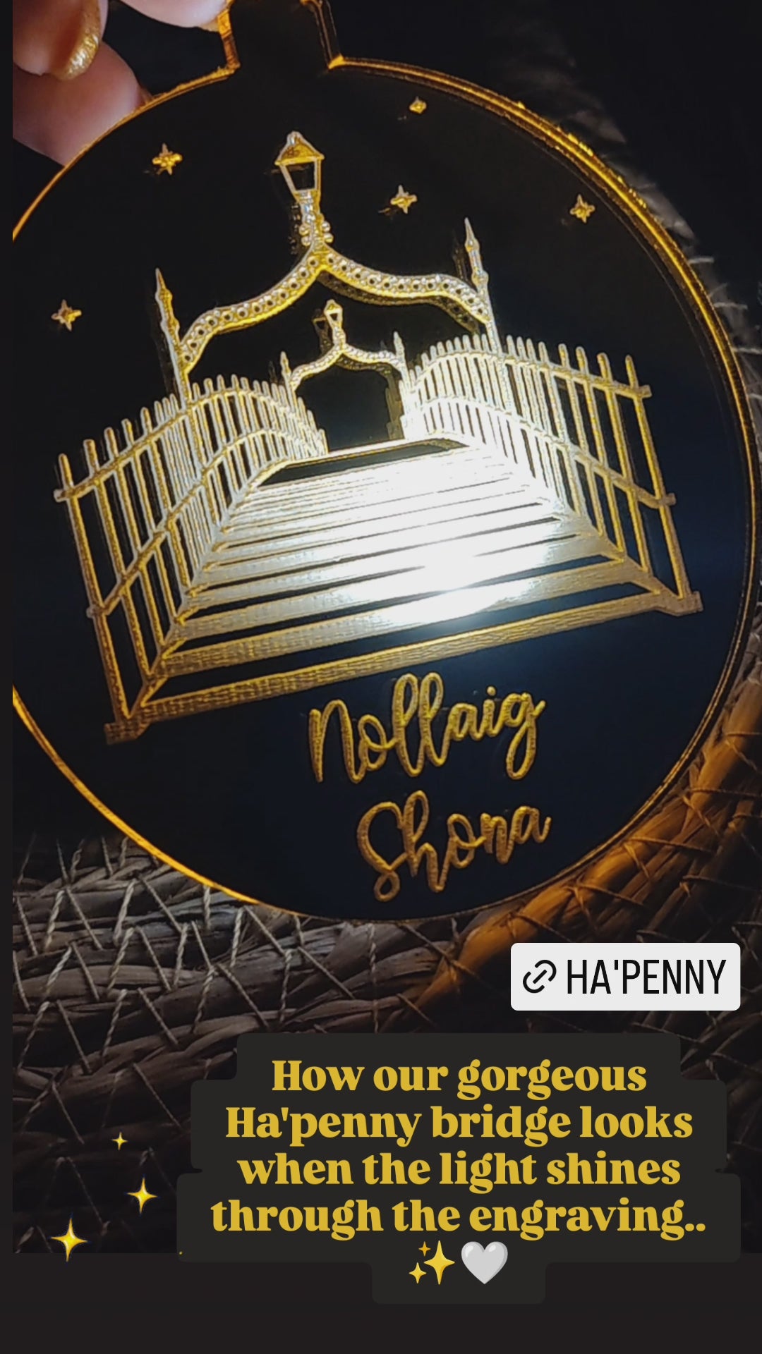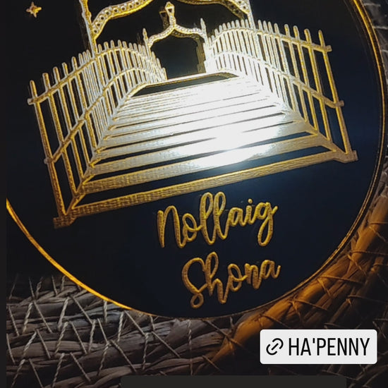 This beautiful Christmas tree bauble features Dublin's Ha'penny bridge and bears the Irish "Nollaig Shona" meaning Happy Christmas.