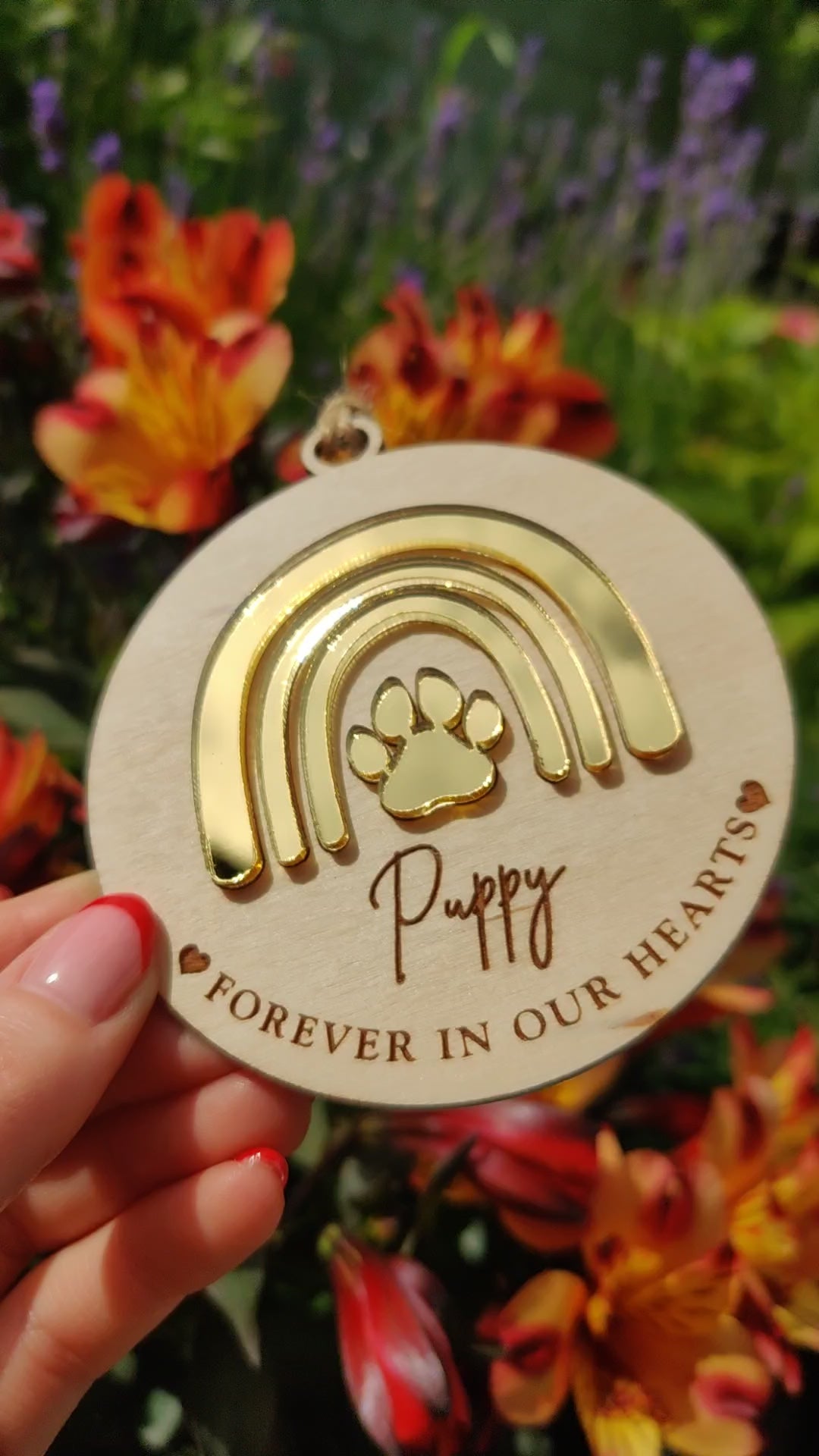 The rainbow and paw print gives a gorgeous shining finish as it's gold mirrored acrylic.
