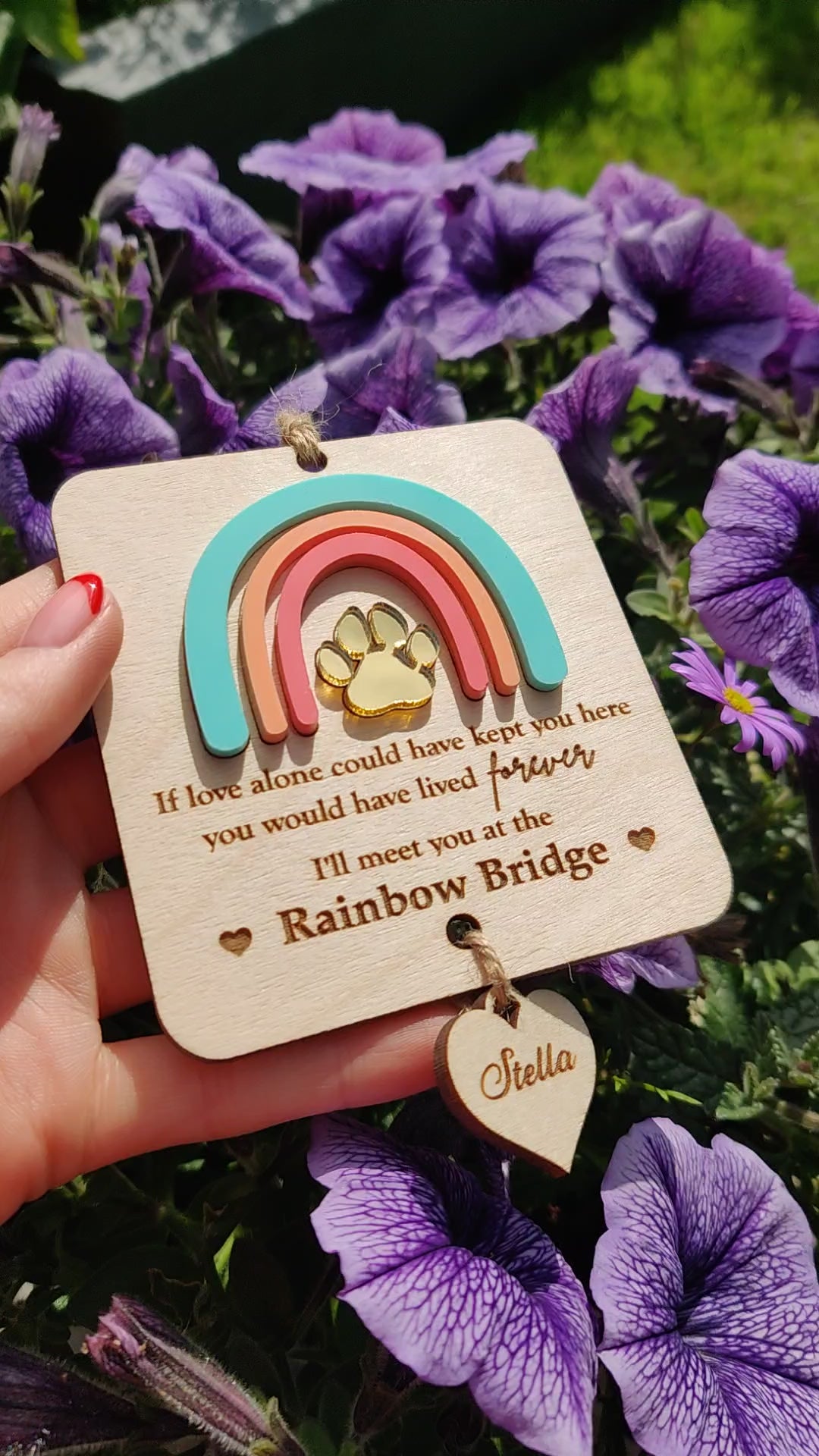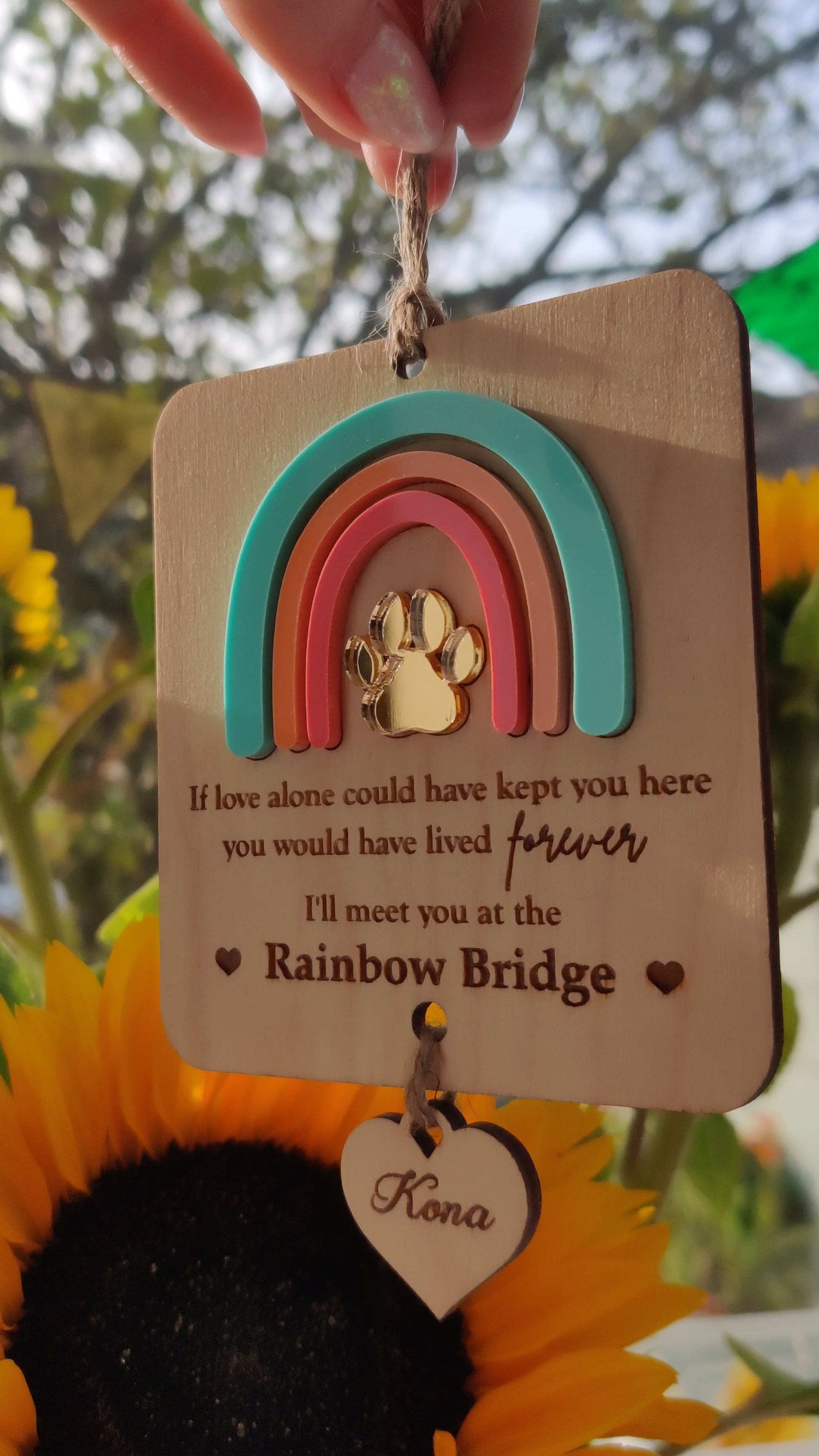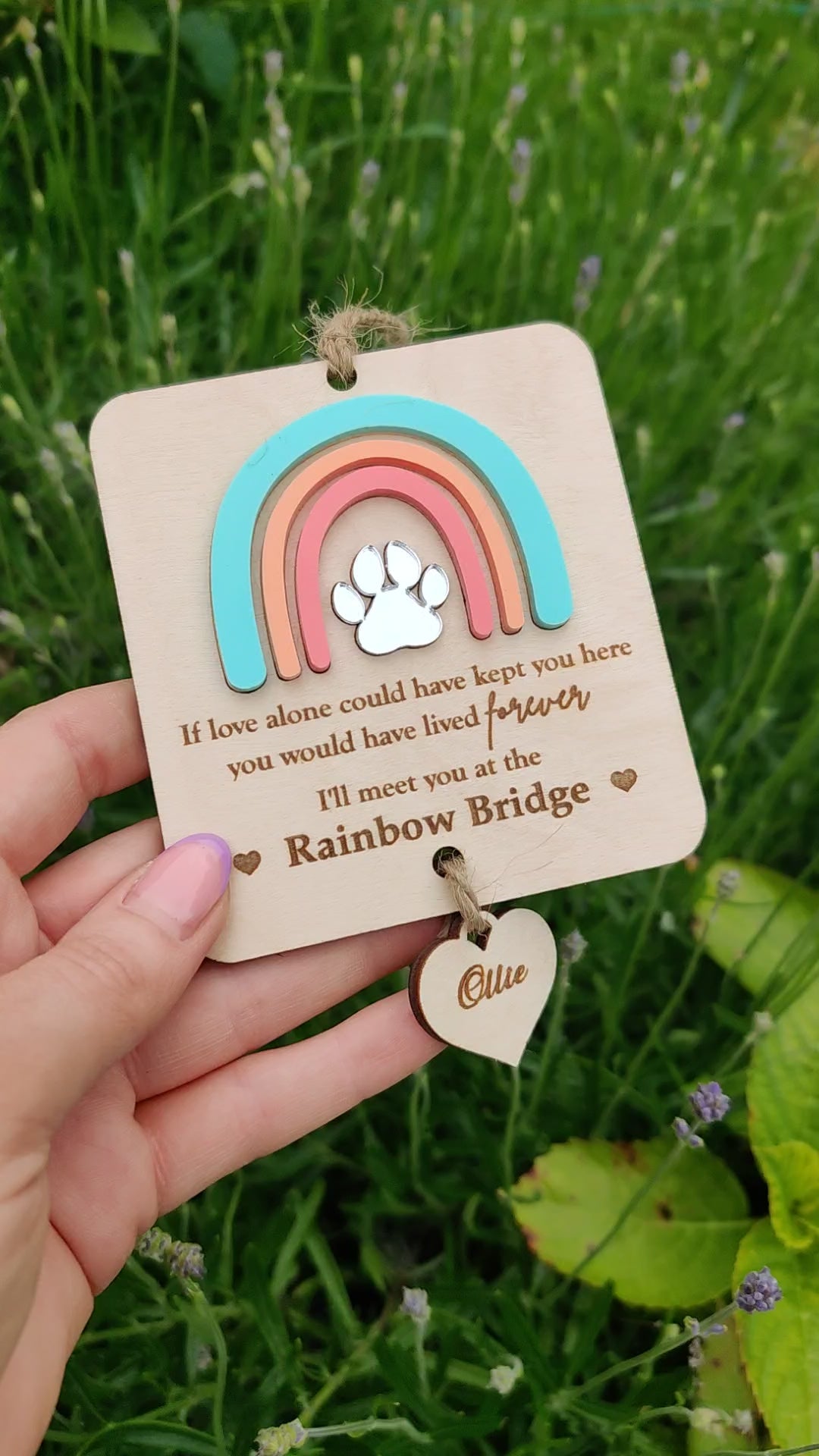 Engraved on plywood, acrylic rainbow and finished with a clear varnish.
